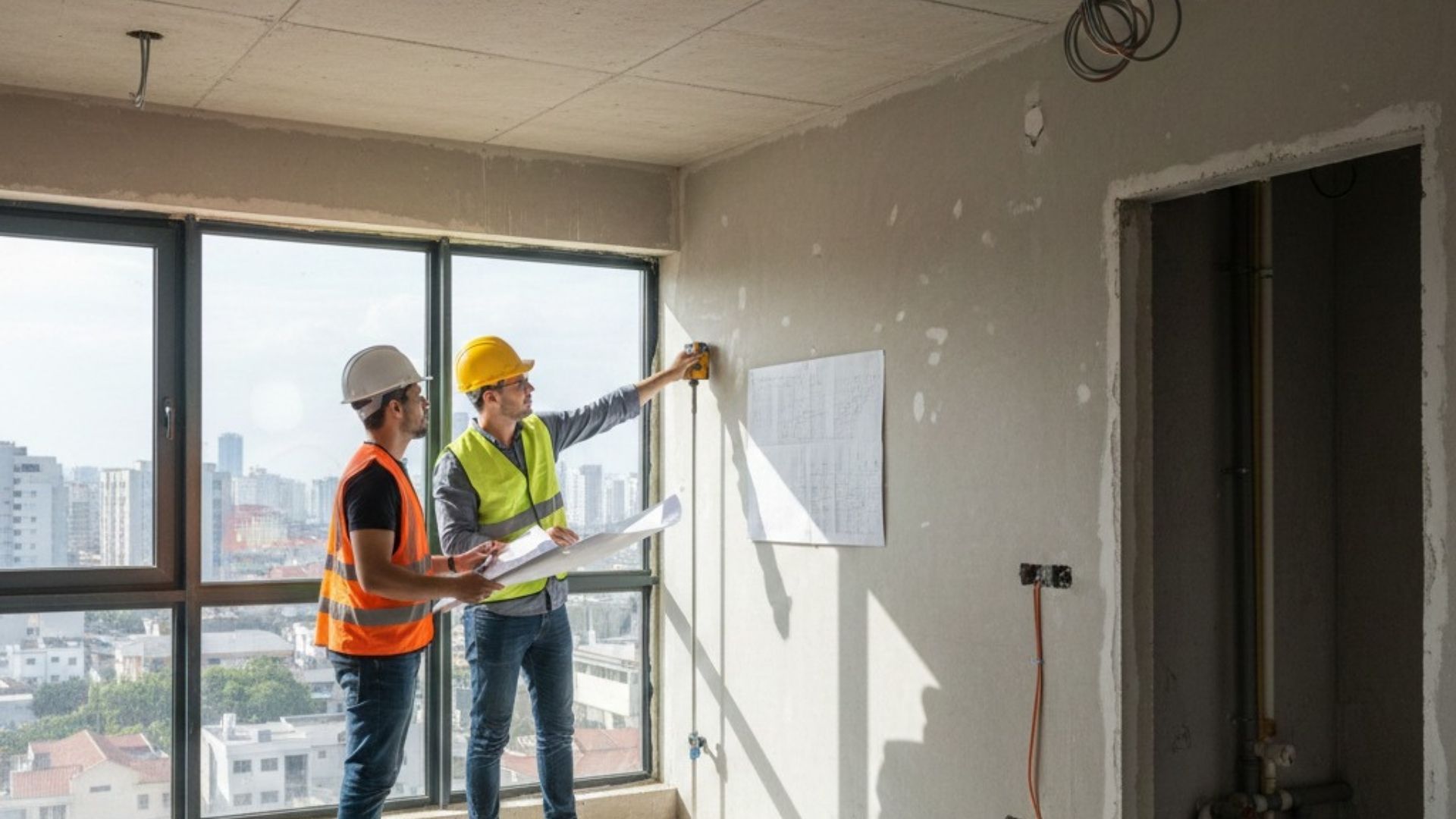 Análise técnica dos sistemas estruturais, elétricos, hidráulicos e do estado geral da edificação.